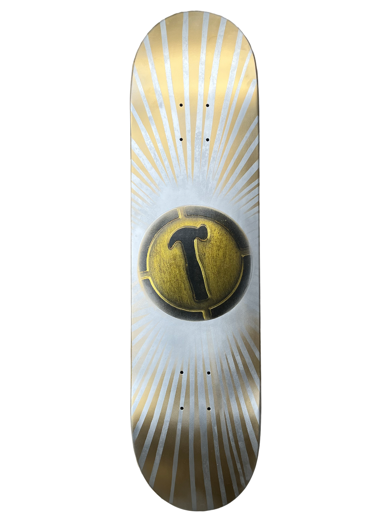1 of 1 hand-painted deck by Jim Greco on top of metallic inks